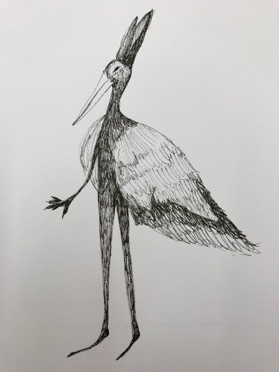 Inspired by the hare like figure from my rabbit painting, I decided to create a figure that incorporates the characteristics of a hare & a stork. Both represent fertility, however my demon incapsulates the feelings of loss, anger, jealousy and acceptance. Now thinking of transforming my drawing into a puppet…….