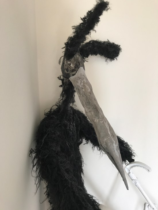 This is my 1st attempt of designing a model/puppet from one of my drawings. The puppet is a hare/stork creature made out of a dolls body & head strengthened with wire, paper mache and will be decorated with feathers and fur. The process of creating this piece has been cathartic and has given me greater […]